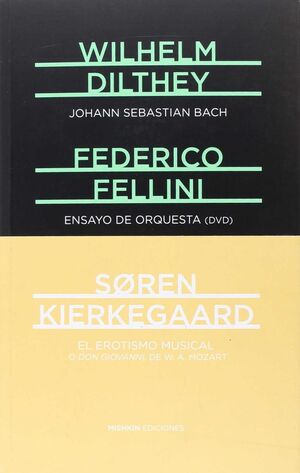 El volumen reúne sendos ensayos sobre Bach y sobre la ópera Don Giovanni de Mozart, que aunque habían aparecido en colecciones de sus respectivos autores, Dilthey y Kierkegaard, nunca se habían editado como títulos exentos, como ahora. El tercer título, en soporte DVD, es una película de Federico Fellini, Prova d'orchestra (1979), que redondea la temática musical desde del punto de vista contemporáneo. La película está presentada por el propio director, que repasa las aportaciones del compositor musical de prácticamente todas sus películas desde 1952 -Ensayo de orquesta fue la última-, que fue Nino Rota (Oscar en 1974 a la mejor banda sonora por el Padrino II).