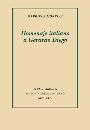 Homenaje italiano a Gerardo Diego, más que un ensayo es un tributo que el conocido hispanista Gabriele Morelli rinde a Gerardo Diego. En él se recuerdan sus viajes a Italia, sus versiones de poetas italianos y la relación que tuvo con sus traductores. Además, dado el hermanamiento existente entre Diego y Leopardi, se ofrece un minucioso cotejo del soneto «Insomnio» con el idilio «La sera del dì di festa» del autor de «L'infinito», que trata el mismo tema. Pero, sobre todo, el Homenaje presenta el conocido soneto de Diego en sus tres borradores (el último, inédito), estudia su rico entramado verbal y se sumerge en la fuente de inspiración del poema, ejemplo perfecto de la humana aspiración al amor y a la belleza. Un estudio profundo sobre Gerardo Diego e Italia y la moderna relojería verbal del soneto «El insomnio». Gabriele Morelli es un reconocido hispanista, estudioso de la generación del 27, a la que ha dedicado numerosos ensayos y libros, entre los que destacan las ediciones de Pasión de la Tierra, de Vicente Aleixandre (1987) e Historia y recepción de la Antología de Gerardo Diego (1997). Igualmente se